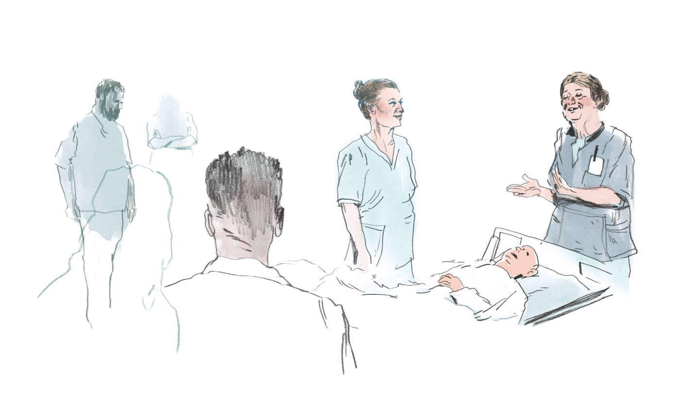 ”I et praksisorienteret fag lærer man bedst ved at blive sat i situationer, hvor man kan reflektere over sin praksis, så man ikke stirrer sig blind på en bestemt måde at gøre tingene på. Der er for eksempel mange elementer i at tage et blodtryk. Ud over viden og de tekniske færdigheder i udførelsen skal man have styr på hygiejne og kommunikation med borgeren. Det kan man lære ved at sætte blodtryksmanchet på hinanden i et simulationsrum, så man både prøver at give og få den på, og en skuespiller kan spille borger, så man også øver sig i at tale med en borger,” siger Frey Tøiberg.